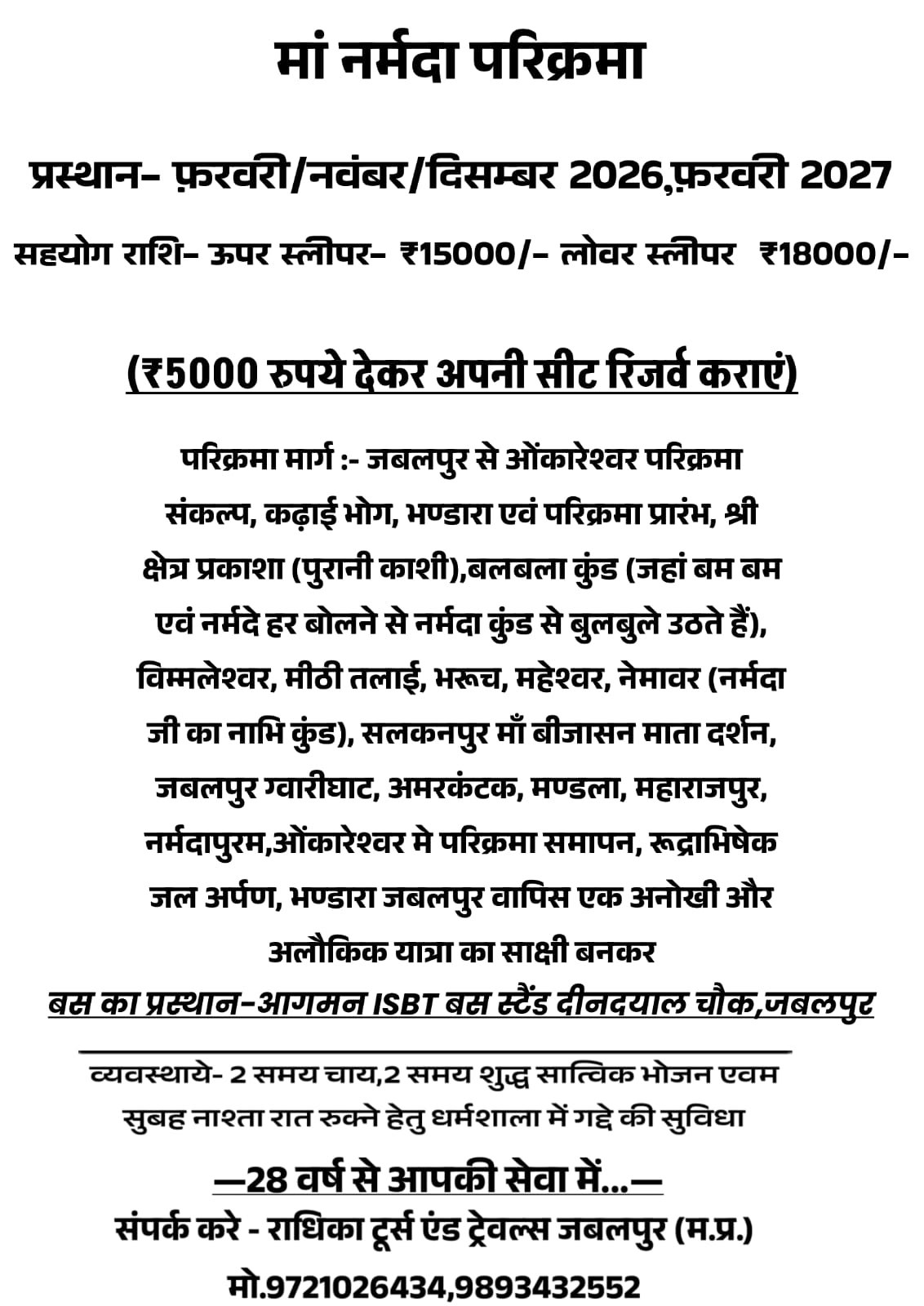 catg_post Maa Narmada Parikrama triwebsol@gmail.com Feb 24, 2026 0 Feb, Nov, Dec 2026 , Feb 2027 Read More